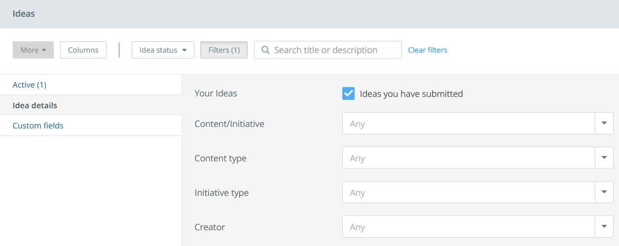 3. Add filters using Idea Details and Custom Fields available in your instance.