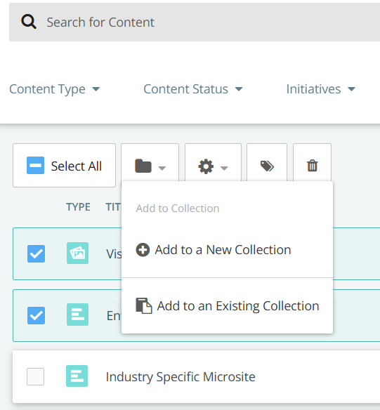On the left panel, select the collection from which you want to add the content to another collection.