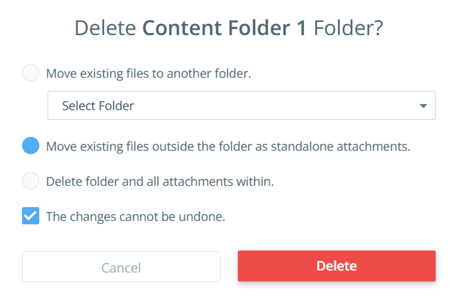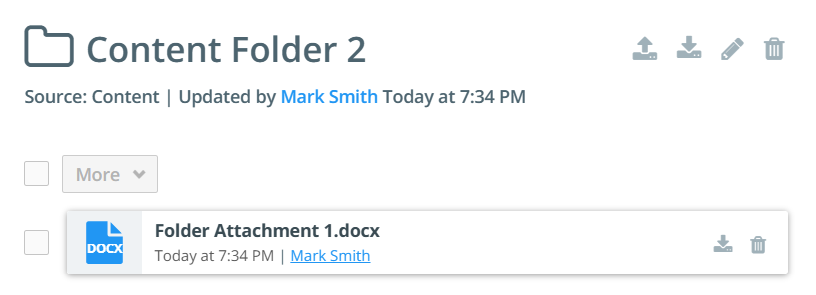 Tip: Users can also upload attachments to folders created by admins for a specific content type. To learn more about creating folders in content type settings, refer to Content Types and Workflow Settings.