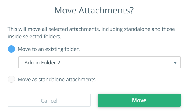 Move to an existing folder - Select a folder from the drop-down to which the attachments will be moved.