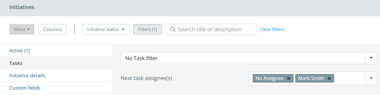 When filtering by an individual user, all tasks assigned directly to that user, as well as tasks assigned to any groups they are part of, will be shown. In contrast, filtering by a group will display only those tasks explicitly assigned to that group, excluding tasks assigned to individual members, ensuring clearer and more precise task tracking.