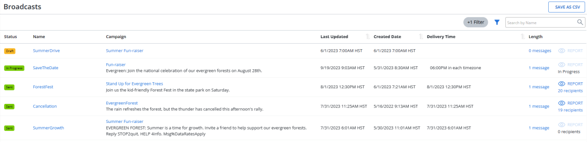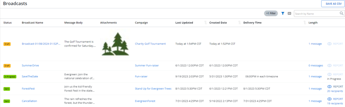 Resolved an issue where the Save as CSV function wasn’t working properly with active search filters in broadcasts.