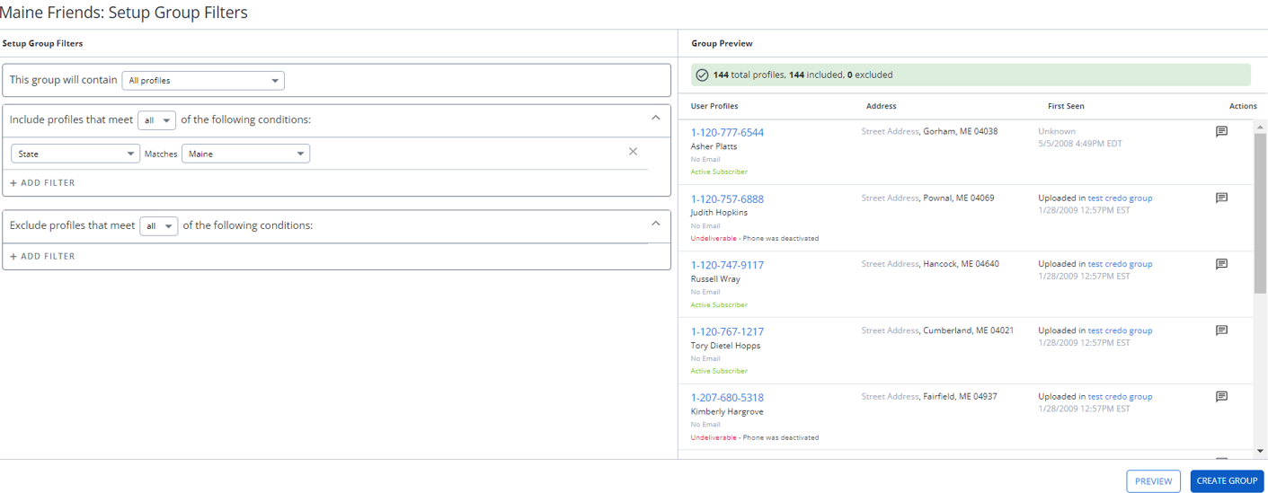 Select Preview to see the number of profiles that will be added to the Members table for the uploaded group.