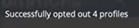 Opt-Out icon becomes active when at least one profile is selected.A confirmation message appears to confirm opting out the selected profiles.