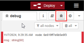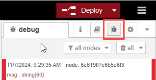 msgobject, which is passed between nodes in a flow, in the debug message console.
