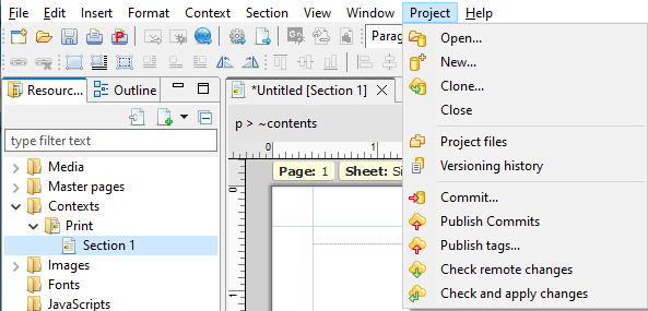 To record this version in the repository, select Project > Commit. This records the project files as a new version in the repository. Remember to save any changes before you commit.