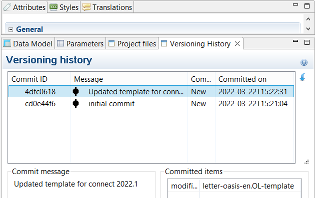 OL Connect uses Git integration to maintain the history of a versioned project in a local repository. Projects can be created and committed from within OL Connect Designer and DataMapper.