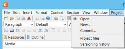 Note: Versioned projects are created from the Project menu at the top of the Welcome (or Home) screen. Projects created with the Sample Projects wizard are not versioned.