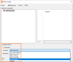 The Image Insert dialog now includes an Insertion Point option, which inserts the new image at a specific position. (92004)