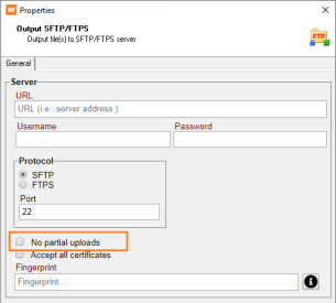 • An option was added to the SFTP/FTPS output plugin to allow disabling making partial transfers when uploading (partial transfers are enabled by default). (92019)