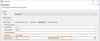• LPR Queue Timeout and Retry Attempts are now configurable in the Print Options page. (94461)