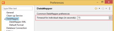 • Implemented check for infinite loop in DataMapper script engine. Any script with an infinite loop is canceled after the time set in Preferences->DataMapper->Timeout option. (88421)