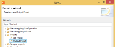Added job and output preset items to the File>New wizard, so you can create presets in the same way as templates and data mappers. (88618)