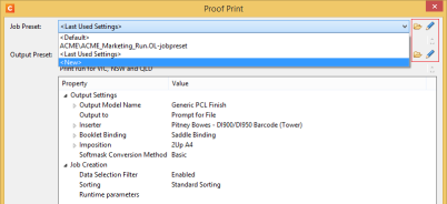 The Print and Proof Print dialog have been simplified to make them less cluttered, and simpler to use. They now provide plentiful ways for selecting, opening, editing and saving job output presets. (88903)