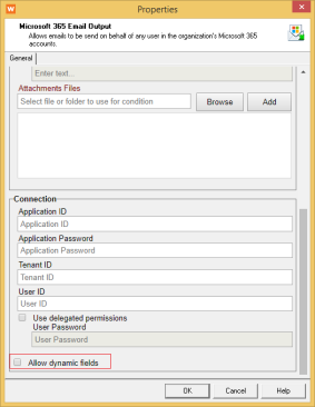 • You can now specify dynamic values in the connection parameters for all Office 365 plugins by using variables and data selections to populate those fields. (88289)