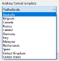 At the moment address block templates are provided for the following countries: United States, Canada, United Kingdom, Germany, France, Italy, Spain, Netherlands, Belgium, Australia, and Malaysia. Other regions and postal service specific formats will be added in future versions.