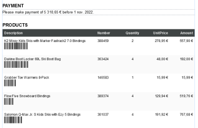 Added support for barcodes in dynamic tables, enabling the creation of documents such as warehouse pick lists with scannable barcodes for each line item. (91196)