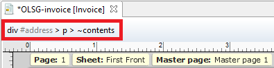 To see this, toggle to the Design tab in the workspace. Click anywhere in the content. Take a look at the breadcrumbs at the top of the workspace or select the Outline pane. The breadcrumbs show the HTML tag of the clicked element, as well as the HTML tags of other elements to which the clicked element belongs. The clicked element is at the end of the line.