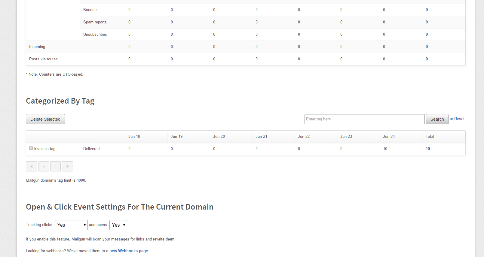 Note: The Mailgun tag allows you to view the stats per tag. Mailgun has a quick refresh and stats are available almost instantly.