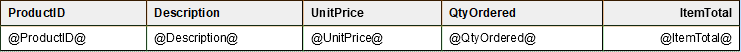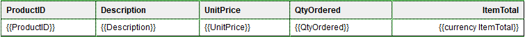 In templates made with older versions of OL Connect, Dynamic Tables are by default filled with placeholders. Placeholders look like this: @UnitPrice@.