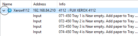 Once a printer is being monitored, the details can expanded and the individual printer trays displayed. These can be done as follows:
