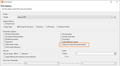 Added an experimental option to convert content to grayscale during output creation. When this option is enabled, the entire output file should be converted into true grayscale, rather than color. (96130)