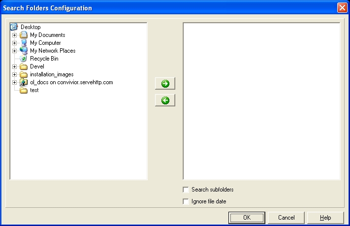 - Choose Options | Set Search Folders and use the Search Folders Configuration dialog box that appears to select the OL ConnectImage archive folders to include in the database.