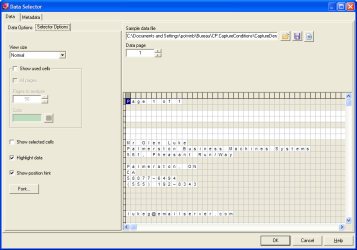 - Highlight data: Select to have the Data Selector highlight only those cells (or fields) that contain data from the sample data file.