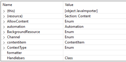 If the current script is not a Control Script, the overview also includes the special entry "(resource)". When expanded, this entry shows the HTML of the current Master Page or section, allowing you to see exactly how each line in the script affects the DOM.