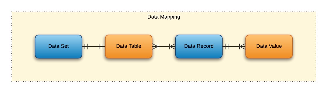 The following diagram illustrates the basic relationship between these entities in the context of the data mapping process: