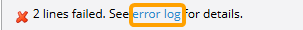 (Optional) Select error log from the "Exceptions" panel to download a .txt version of your upload file with explanations of any failed line items.