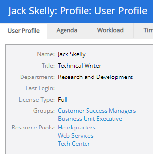 User profiles can be accessed by clicking a linked user name anywhere in PowerSteering: