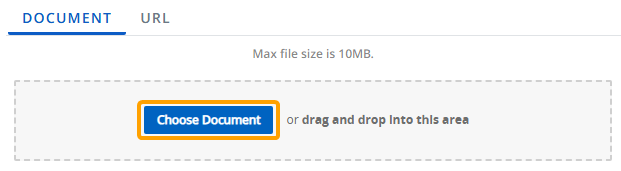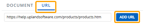 Select the URL tab, enter a URL into the textbox, and select the Add URL button to add a URL link as a Document.