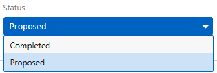 Note: This field will only appear if No Approval is selected from the "Approval Type" field. When Documents require approval, their statuses cannot be edited; they are totally reliant on whether or not the Document has been approved. Instead of "Proposed" and "Completed", the potential Document statuses will be "Unapproved" and "Approved".