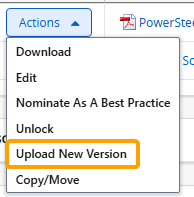 Note: Users can also select the Upload New Version button while viewing Document versions.