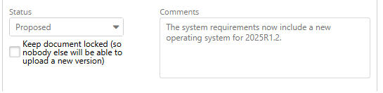 Keep document locked (so nobody else will be able to upload a new version): Select this checkbox to lock the Document upon uploading the new version. This will prevent other users from uploading any more new versions until the Document is unlocked.