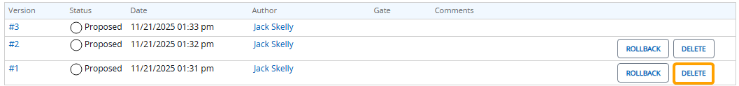 Note: The current version of a Document cannot be deleted without deleting the entire Document. However, this will delete all Document versions as well.