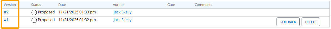 If the checkbox is selected, the numbers in the "Version" column will be resequenced to reflect the new order. Version "#1" has been removed, so they will receive "#1" and "#2".