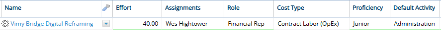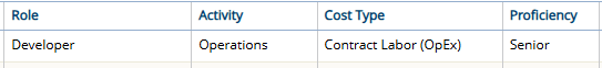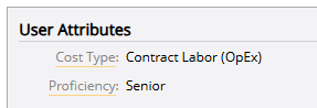 Additionally, the assigned Resource's Cost Type (the User Cost Tag) and Proficiency (Resource Qualification Tag) must be set to "Contract Labor (OpEx)" and "Senior", respectively.