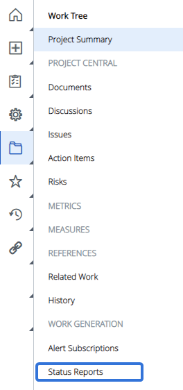 Note: Status Reports can also be accessed by selecting Status Reports from the "Project" menu: