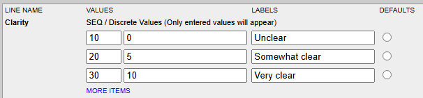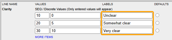 Example: For the "Clarity" line item, the three labels will be displayed as three drop-down choices on the Scorecard Metric.