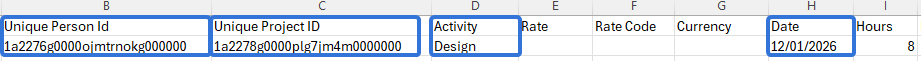 Update: Time entries in the import file will replace any duplicate entries that exist on the Timesheet.