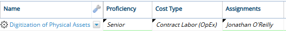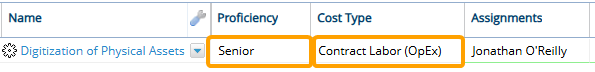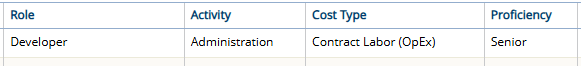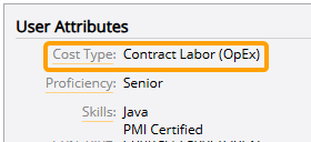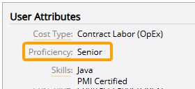 Additionally, the assigned Resource's Cost Type (the User Cost Tag) and Proficiency (Resource Qualification Tag) must be set to "Contract Labor (OpEx)" and "Senior", respectively.
