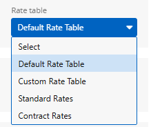 Users can determine which Rate Table a work item will use while editing the work item's standard details.