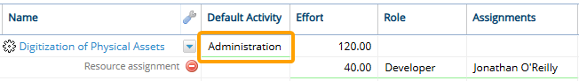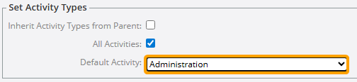 Note: The "Default Activity" field/column can only be edited when "Inherit Default Activity" is disabled. Disable this using the "Inherit Default Activity" column in Project Central or the "Inherit Default Activity from Parent" field on the Budget page.