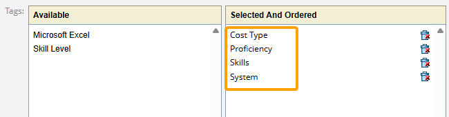 Note: The User Cost Tag will always appear on Rate Tables even if it has not been selected as a Resource Planning Tag.