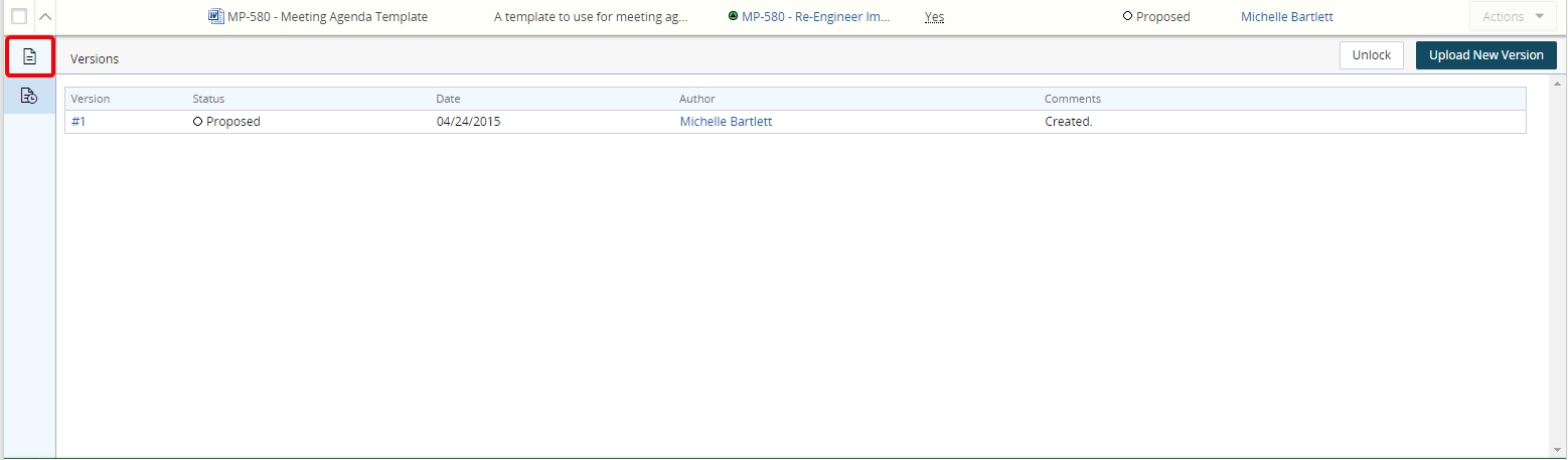 Note: A document can also be locked by selecting Lock from the Actions drop-down menu.