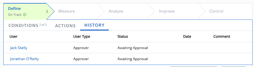 After selecting Submit, the approval settings will be set to the Gate. A list of approvers can be seen under the "History" tab on the Gate panel:
