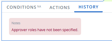 Note: If an approval Role that was chosen for the Gate is not currently filled on the work item, the "History" tab will display a warning message:
