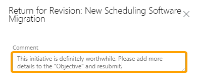 Tip: Although this field is optional, leaving a comment is strongly recommended. This way, the Idea Owner will understand the revisions that need to be made before resubmitting the Idea.